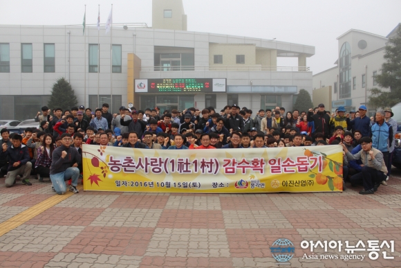 경북 청도군 풍각면과 지난 2012년 자매결연을 맺은 경산시 소재 아진산업㈜ 임직원 200여명은 본격적인 농번기를 맞아 15일 일손이 부족한 풍각면의 고령자와 부녀자 농가를 찾아 청도반시 수확을 도왔다.